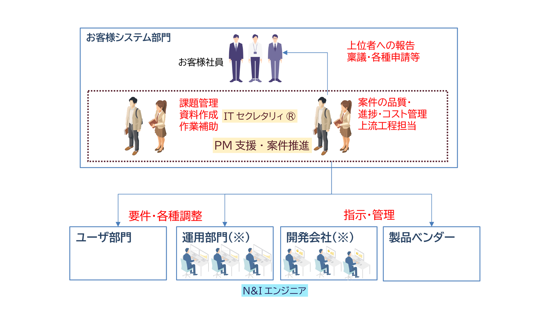 経験豊富なエンジニアがIT企画やプロジェクト案件のマネジメント、案件の上流工程を支援いたします。